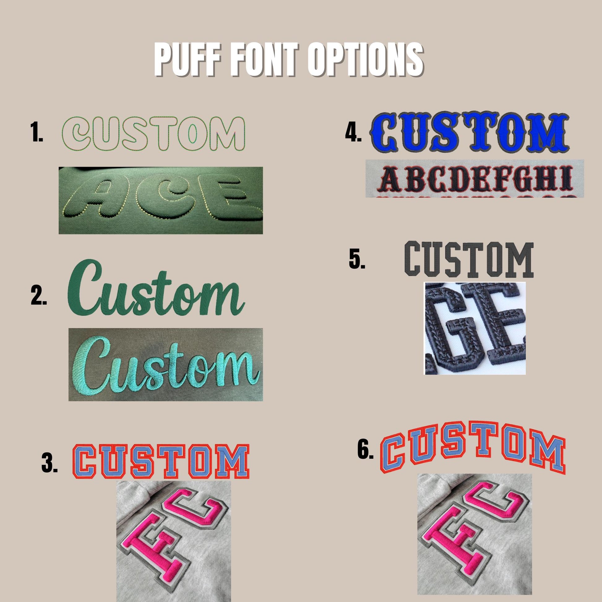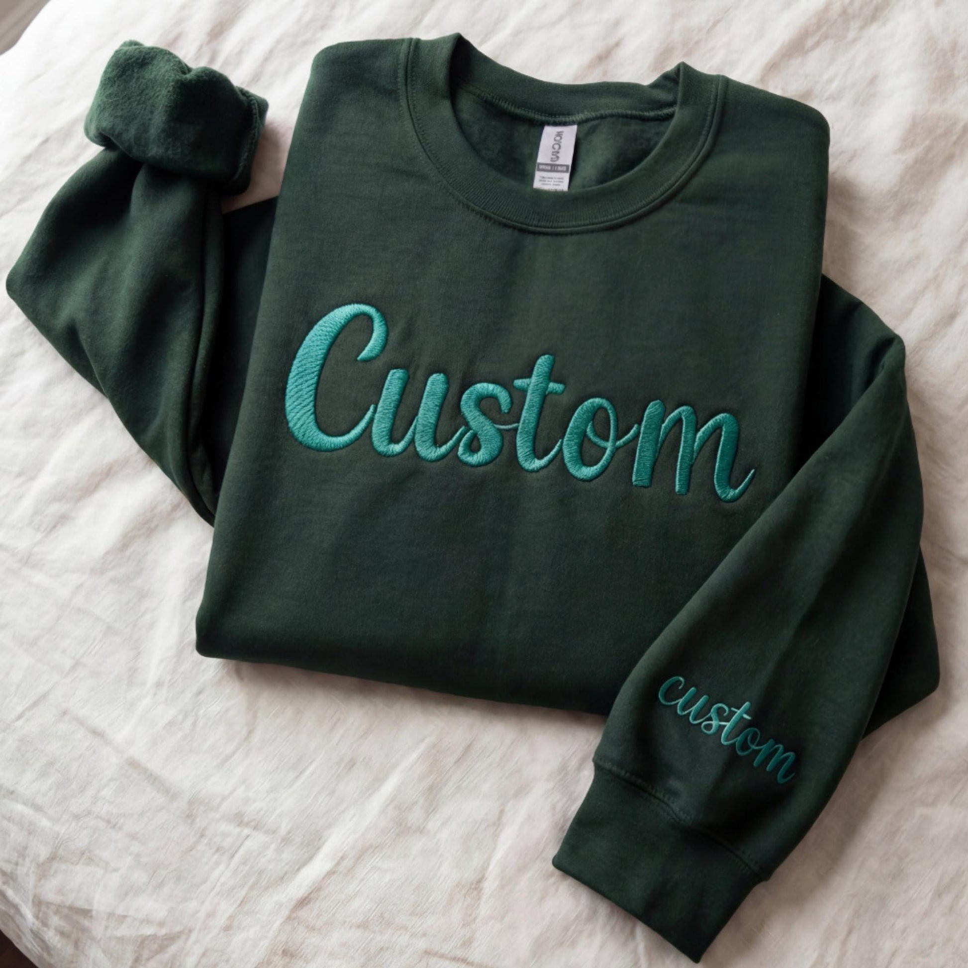 Customizable Puff Embroidery Sweatshirt 3D Print Sweater Custom Text with raised Lettering. Text on sleeve names or short quotes available