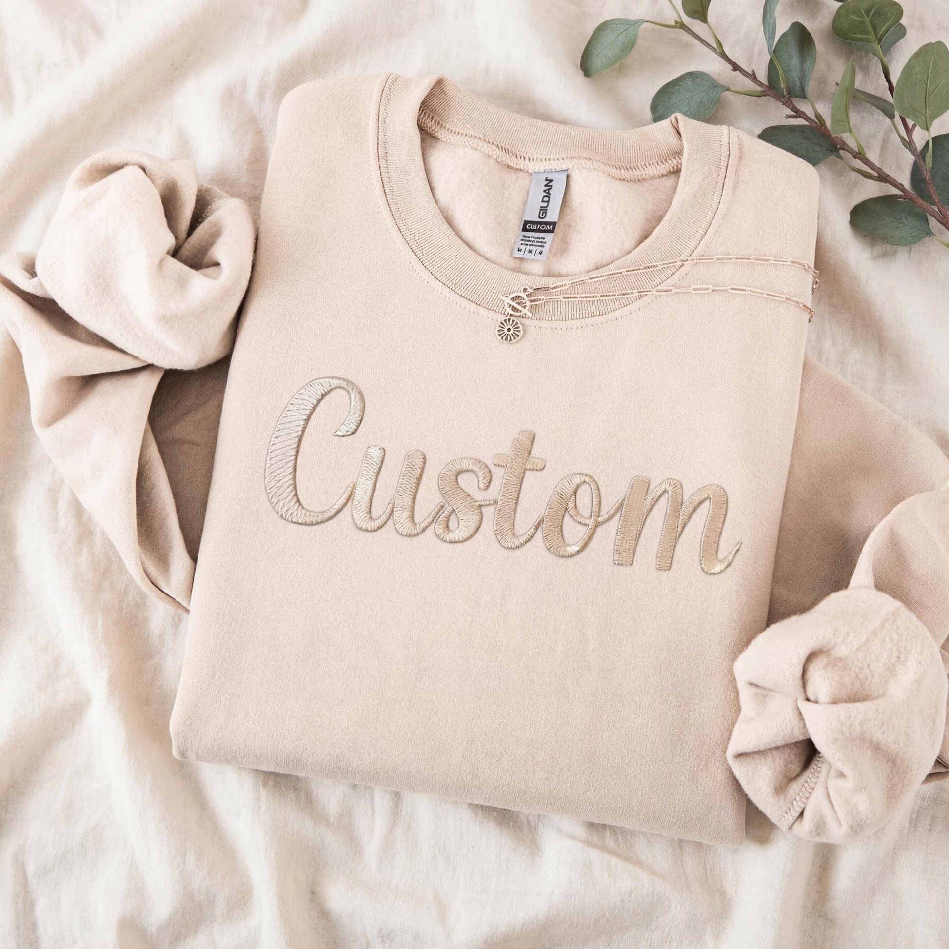 Custom Puff Embroidery Unisex Crewneck Sweatshirt Customizable 3D Lettering Personalized Raised Text Name Logo Gift Embroidery On Sleeve