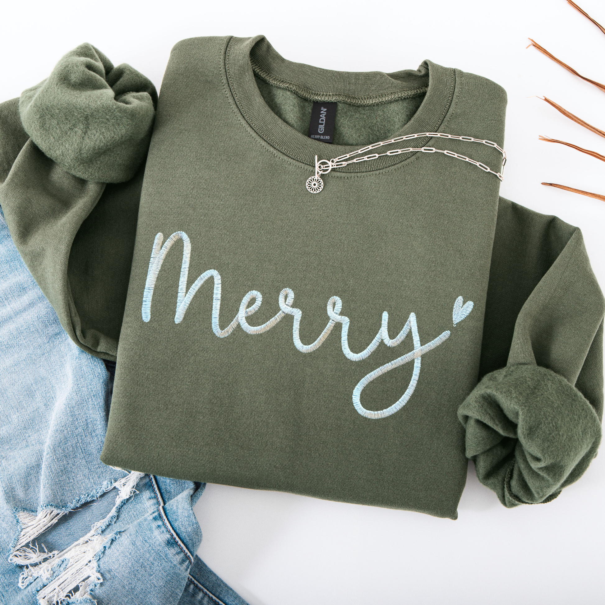 Merry Embroidered Christmas Crewneck Sweatshirt