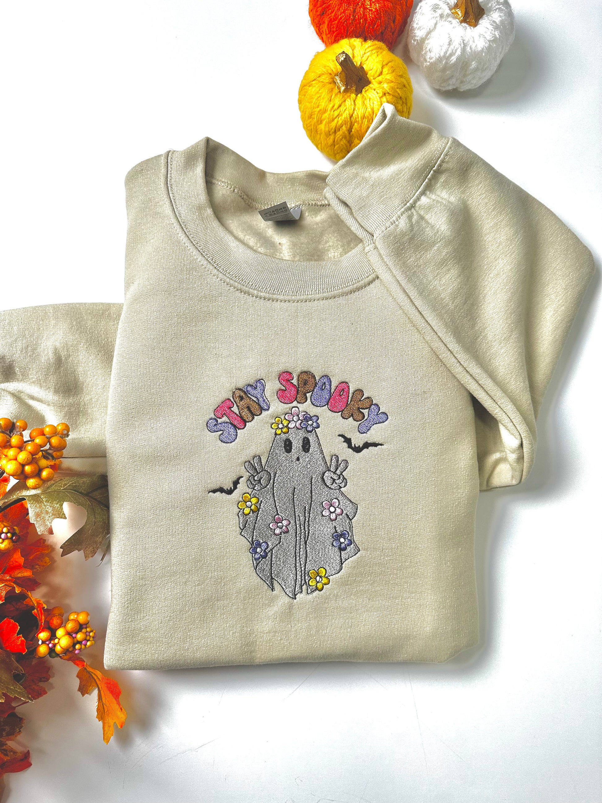 Stand out from the crowd this Halloween with this super cute hippie ghoul embroidered crewneck sweatshirt that also makes for the perfect gift for spooky season lovers. Plus sizes are also available.
